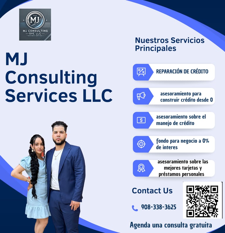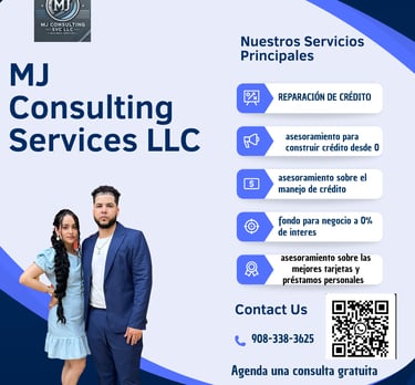 En MJ Consulting Services, contamos con la experiencia y las estrategias necesarias para mejorar tu crédito. Nuestro equipo de expertos te ayudará a corregir y optimizar tu historial, eliminando errores y potenciando tu perfil crediticio para que puedas alcanzar tus metas financieras.